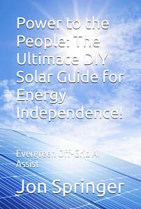 Looking to take control of your energy bill and build your own solar power system? Look no further than “The Ultimate DIY Solar Guide” by Jon Springer! This competitively priced, comprehensive guide is packed with insider tips and expert guidance to help you build a solar power system tailored to your specific needs. With step-by-step instructions you’ll learn everything from sizing your system to troubleshooting common issues. Start your solar power journey today and join the movement towards energy independence! Order your copy of “The Ultimate DIY Solar Guide” now on Amazon.