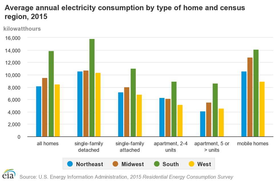 If you’re just looking for a ball park idea of your annual energy consumption habits perhaps you compare similarly to your neighbors. The typical US household consumed an average of 10,715 kilowatt-hours in 2020. If you live in Hawaii you and your neighbors average the lowest at 6,446 kWh per year. Congratulations, Hawaii. But, if you lived in Louisiana then your neighbors are among the most energy hungry in the country with the average home consuming 14,407 kWh per year.