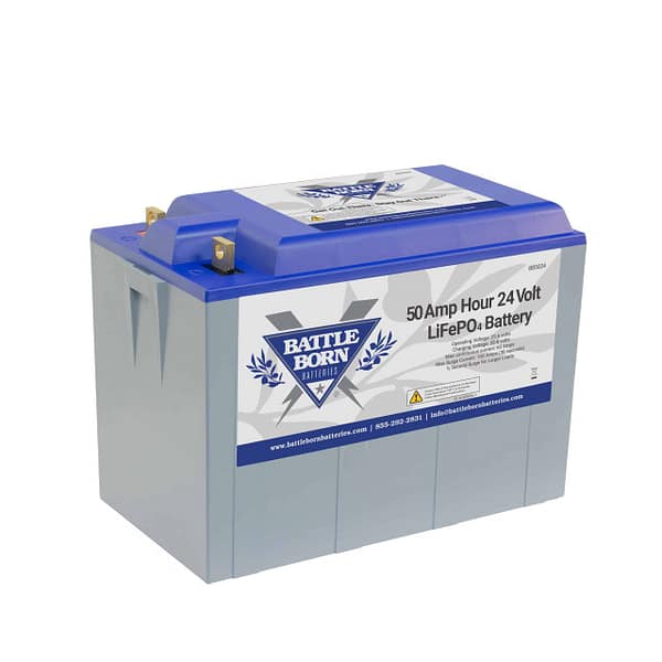 50Ah 24V Lithium Iron Phosphate Battery from Battle Born is built with Lithium Iron Phosphate (LiFePO4), designed with deep cycle applications in mind, $849 with free shipping, find your USA manufacturer with trusted service, offer a 10-year warranty.