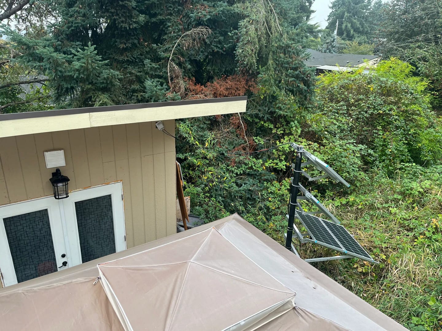 The Power Shed is an independent power source. Power is generated by four 100 watt solar panels, which were purchased as a part of the Renogy solar kit listed below. Depending on sun availability, the 400 watts of solar PV can generate an average of 1,250 to 2,500 watt hours of electricity per day.